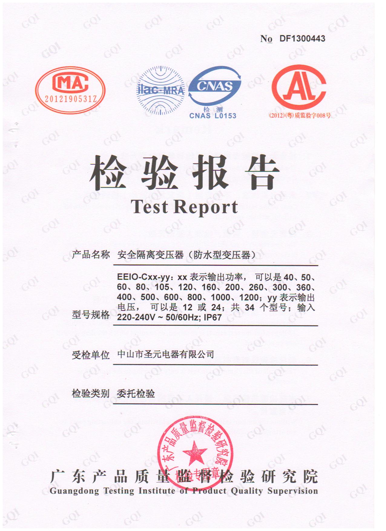 防水等級較高級別為IP68級。IP68防水等級一般是指潛入海底的設(shè)備適用此級別,比如潛水艇上用的設(shè)備。而防水變壓器可浸泡入水底,一般水深不超過10米,適用級別為IP67級。防水變壓器能得到防水等級認(rèn)證的級別為IP67級!圣元防水變壓器廠家的所有防水產(chǎn)品都是通過了IP67防水等級認(rèn)證的!