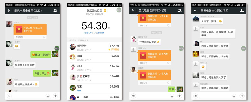 我們圣元也不落后,在微信群搶紅包,許總在年十一到年十五每天不定時(shí)發(fā)一封大紅包讓大家搶?zhuān)?dāng)然這個(gè)活動(dòng)不會(huì)是在上班時(shí)間舉行,晚上微信群特別熱鬧,除了許總發(fā)紅包,大家加入了發(fā)紅包的隊(duì)伍中,紅包不大,卻搶的開(kāi)心。