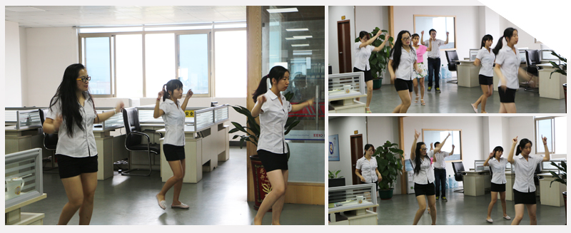 當(dāng)時(shí)大家都不會(huì),也沒有耐心。后來慢慢的接納了這些舞蹈,從不會(huì)到會(huì)。完全是一個(gè)心態(tài)的轉(zhuǎn)變,現(xiàn)在只要舞蹈音樂一響起,大家準(zhǔn)時(shí)排好隊(duì)形。跳舞可以提高大家的工作的狀態(tài),活躍大家的身心,有助于工作的進(jìn)一步開展。