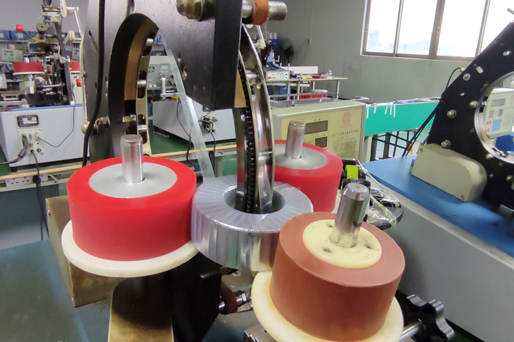 圣元變壓器的生產(chǎn)員工正在對(duì)環(huán)形變壓器鐵芯進(jìn)行聚脂薄膜的繞制。